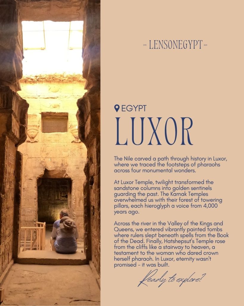 We’re excited to partner with LENS ON EGYPT, a photography and tour-guiding brand that brings Egypt’s history, culture, and beauty to life, to bring you unforgettable travel experiences across the country.
